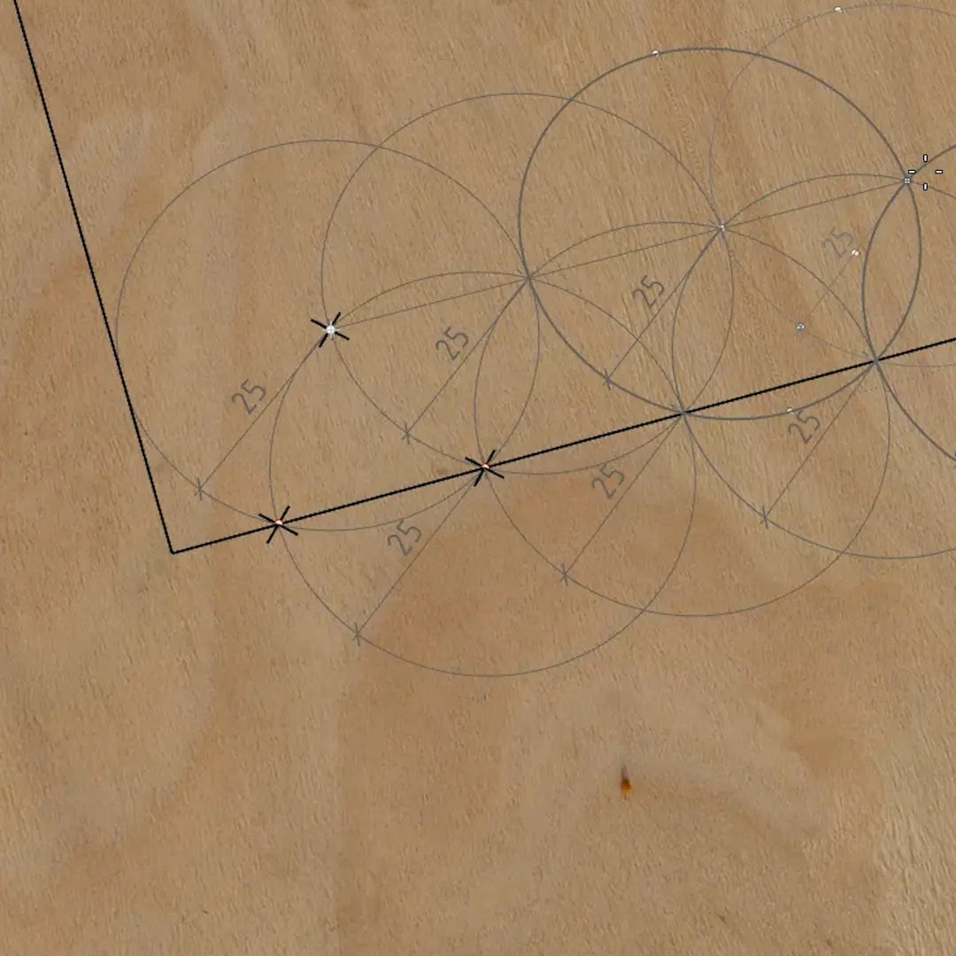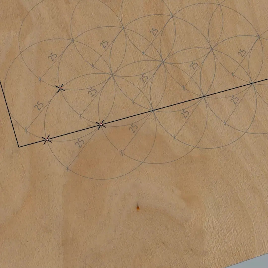 Now you can begin drawing the Flower of Life geometry. The radius remains 25 mm.