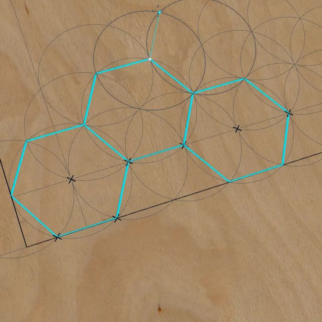 You can draw a hexagonal layout using nothing more than a compass. The principle is the same as when creating the geometry of the Flower of Life. The key is to first locate the center point for your initial circle — once you have that, the rest will follow naturally.