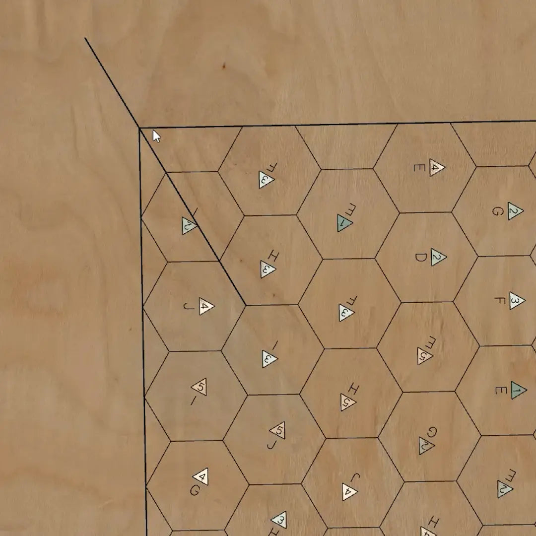 You can also draw the hexagonal grid using only a ruler and lines set at 60°. To start, you need a grid layout where the diagonal of the last cell points toward the corner, as shown in the picture.