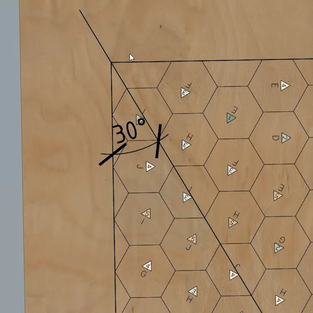 This line is set at a 30° angle from the vertical. The center points and edges of the future hexagonal cells are aligned with it.