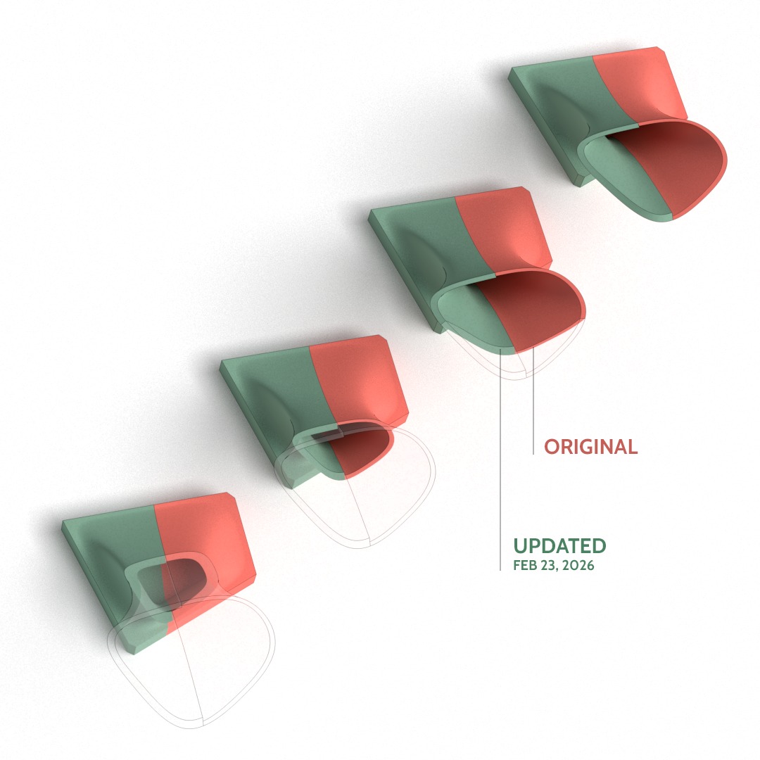 The geometry has been corrected with regard to wall thickness. Areas with excessively thin walls were modified, while the remaining areas remain unchanged. The new geometry is fully compatible with the original design. -