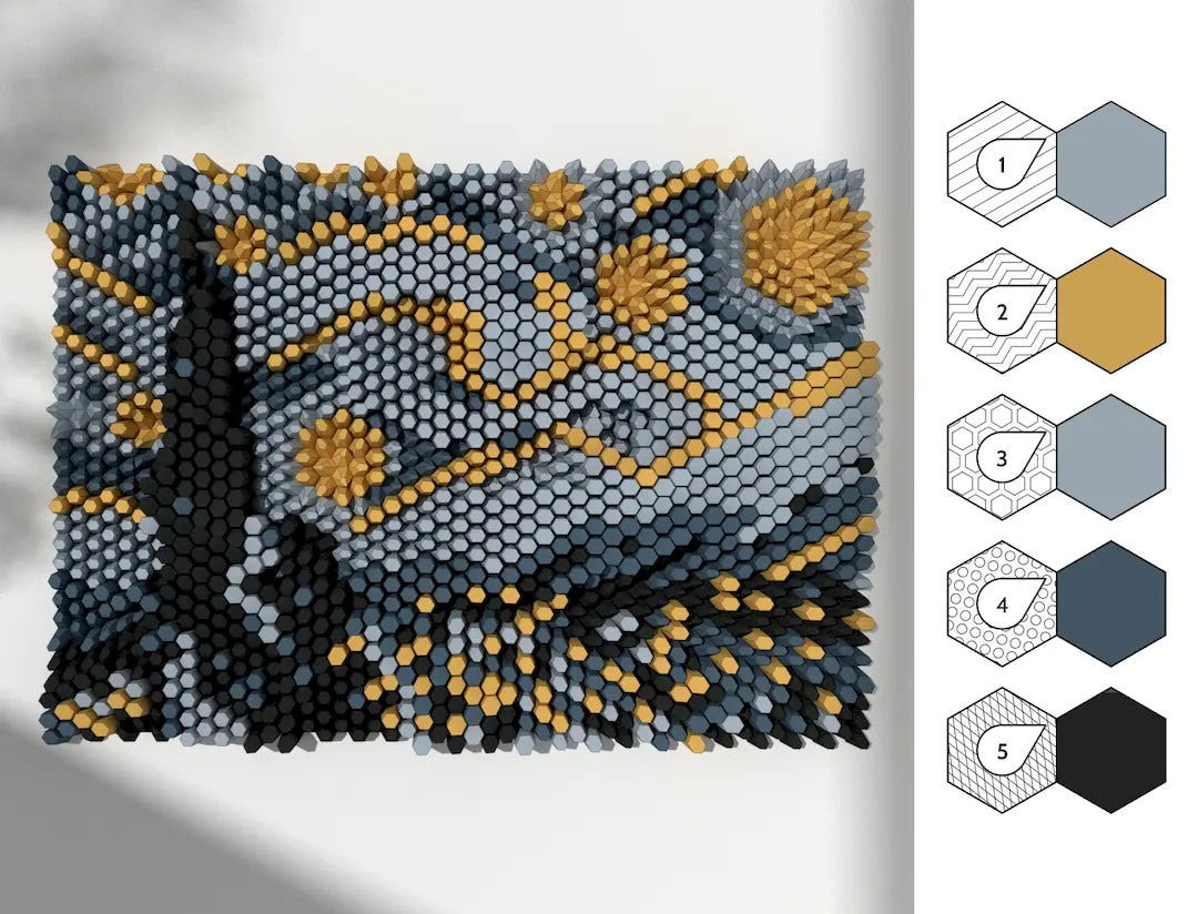 Discover HEXSPIRE - the ready-to-fold Paragami Paper Kit Bundle for effortless folding! Create modern wall art with this fun, tactile offline activity, perfect for solo or family crafting. The bundle includes both Block and Layouts.